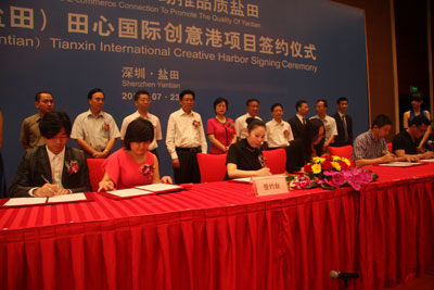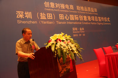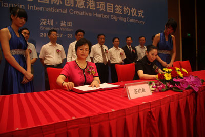 7月23日,深圳市灵狮文化产业投资有限公司在来自全国电子商务行业和创意文化产业200多家企业代表的共同见证下,在大梅沙京基喜来登度假酒店与盐田区政府及第一批30家入驻企业代表举行了签约仪式。签约仪式由盐田区人民政府主办,由盐田区经济促进局和深圳灵狮文化产业投资有限公司承办,中国工业设计协会,中国电子商务协会、香港贸发局、香港生产力促进局、深圳电子商务协会等单位派出负责人出席活动。在与盐田区人民政府签约后,正式宣布田心工业区由深圳市灵狮文化产业投资有限公司接管并负责创建盐田国际创意港。第一批30家企业代表,也将成为盐田国际创意港的“第一代居民”。